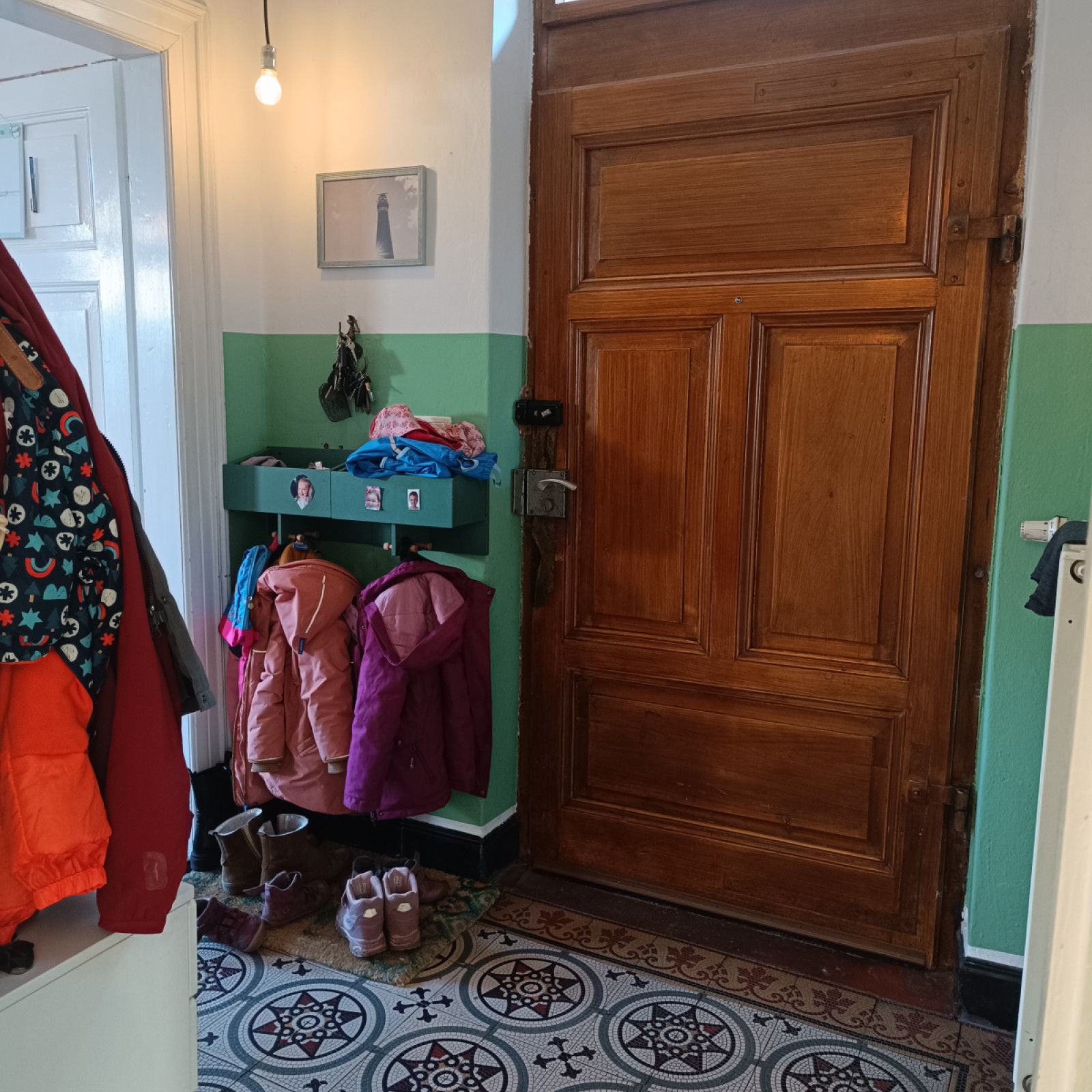 Um den Kindern mehr Bewegungsfreiraum zu schaffen, darf der Flur mitbespielt werden. Hier befindet sich auch die Garderobe der Kinder.
